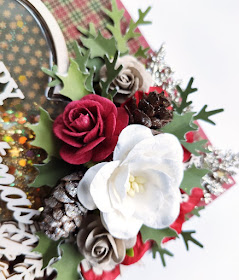 Przyklejam kosteczkami do oklejonej papierami bazy kartki i naklejam zewnętrzną pasującą tekturkę.